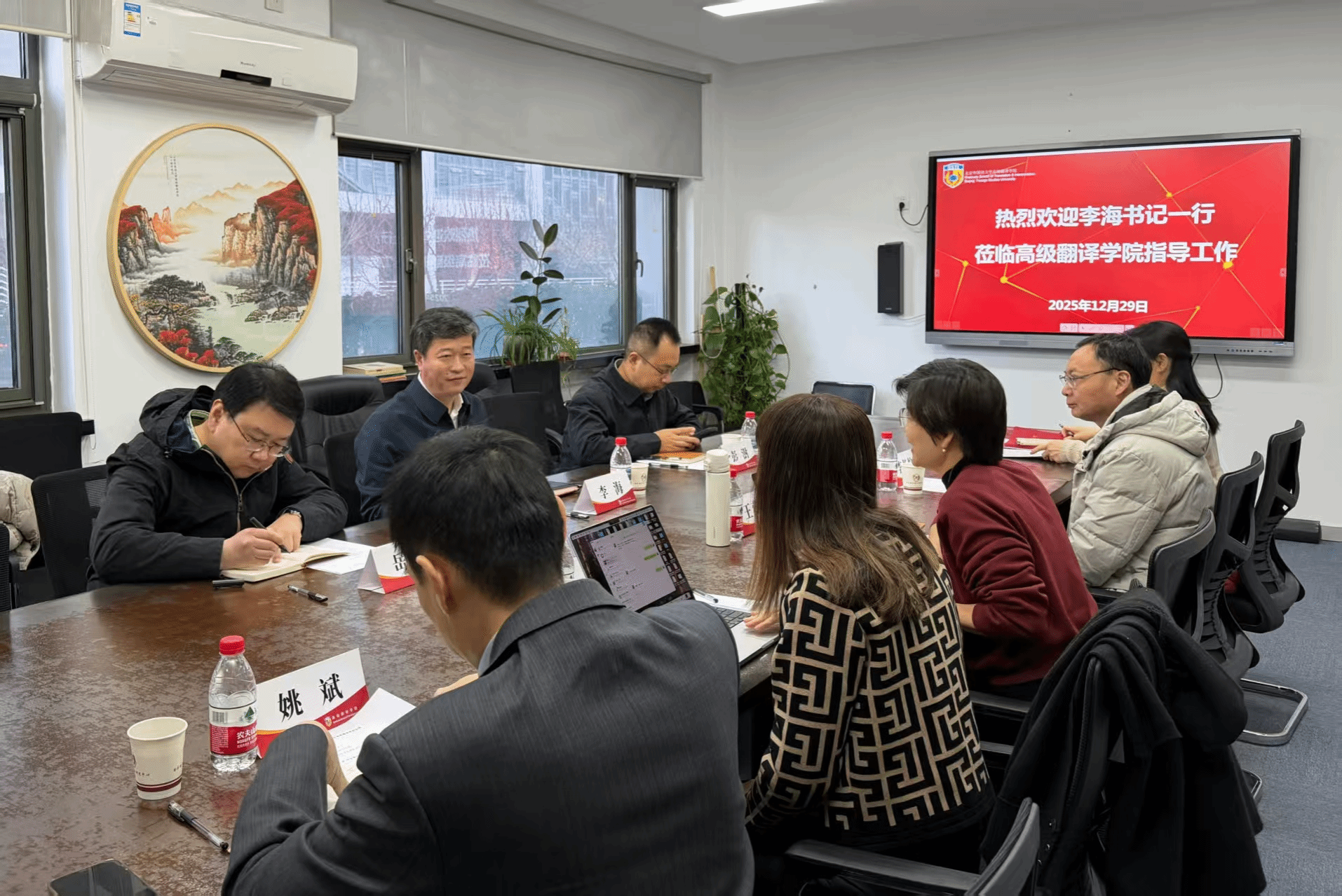 12月29日上午,校党委书记李海一行到pg娱乐电子游戏官网入口开展调研。学院班子成员参加调研座谈。pg娱乐电子游戏官网入口党总支书记王薇薇,院长任文分别就学院党建思政、人才培养、学科发展、有组织科研和教师队伍建设等方面做了专题汇报。李海书记认真听取汇报,并围绕学院特色专业发展与复语复合型翻译人才培养等方面与大家进行交流。李海书记充分肯定了高翻学院近年来取得的显著成绩。他强调,学校将继续全力支持pg娱乐电子游戏官网入口的建设与发展。面对人工智能技术尤其是AI翻译迅速发展带来的机遇与挑战,...