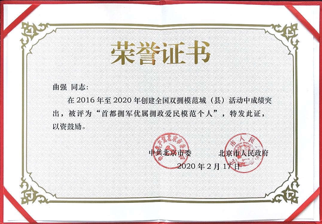 pg娱乐电子游戏官网入口教师曲强评为北京市“首都拥军优属拥政爱民模范个人” pg娱乐曲强老师于去年底经学校推荐通过全市评比,于今年被北京市评为“首都拥军优属拥政爱民模范个人”。曲强老师长期坚持从事拥军工作,担任武警特警学院客座教授,为国防大学客座讲授培训课程。发扬了pg娱乐电子游戏官网入口长期以来的拥军优属传统,为我校拥军工作做出了贡献。