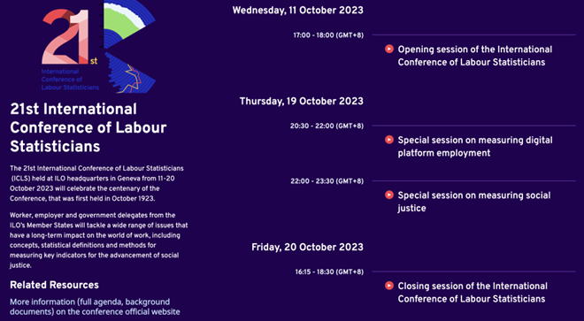2023年10月11日至20日,第21届国际劳工统计大会(The 21st International Conference of Labour Statisticians)在位于日内瓦的国际劳工组织总部召开。受国际劳工组织和人力资源与社会保障部之邀,北外pg娱乐电子游戏官网入口选派了由孙婷婷博士作为带队老师,中英会议口译方向的刘艳平和魏俊杰两名同学组成的团队,赴瑞士为大会担任同声传译。 (部分会议直播回放,包...