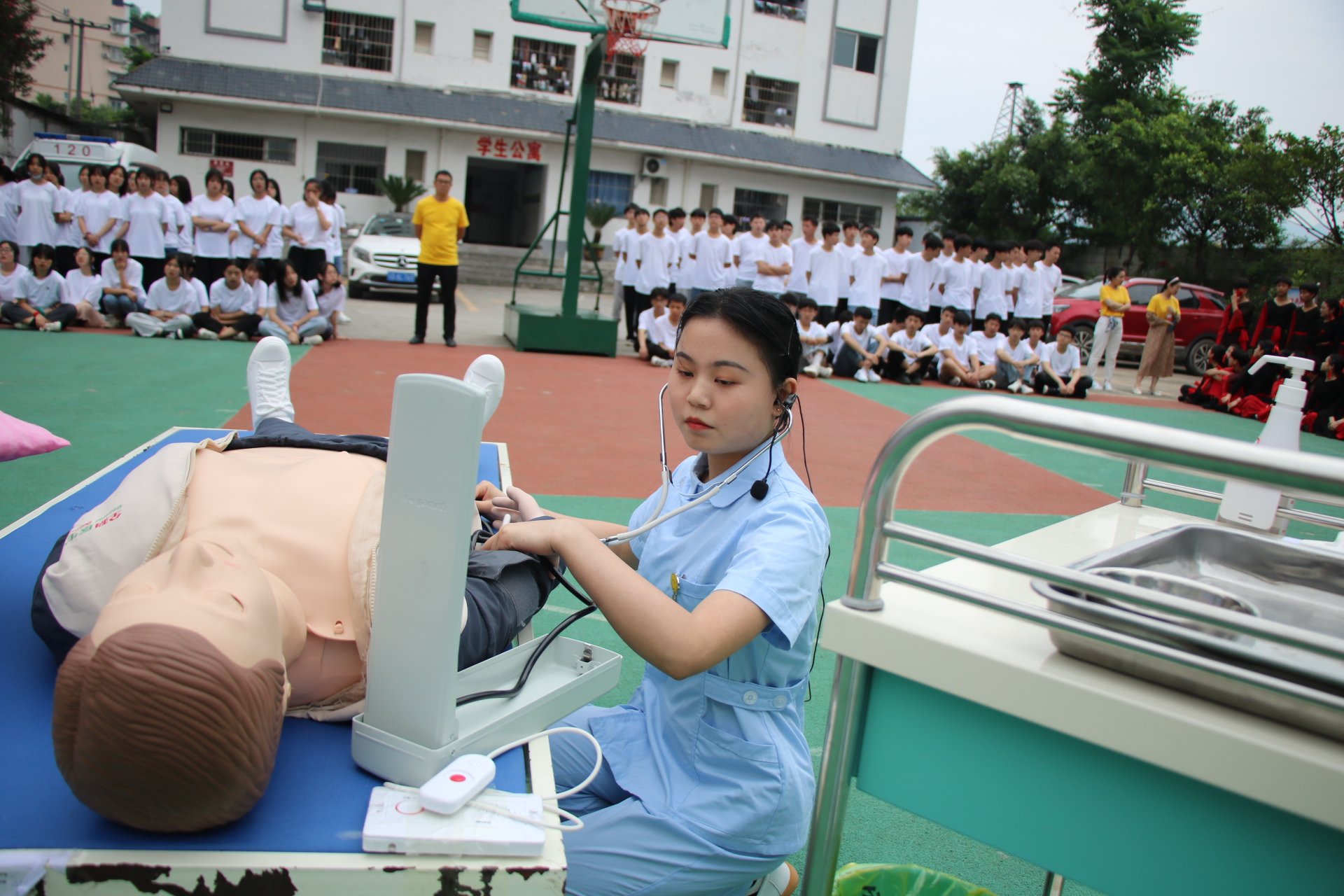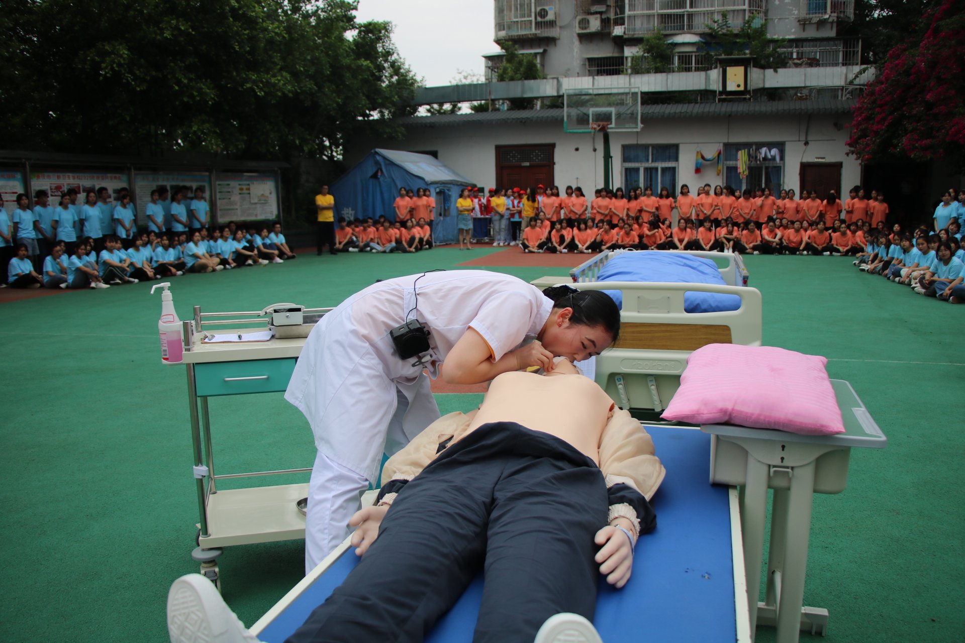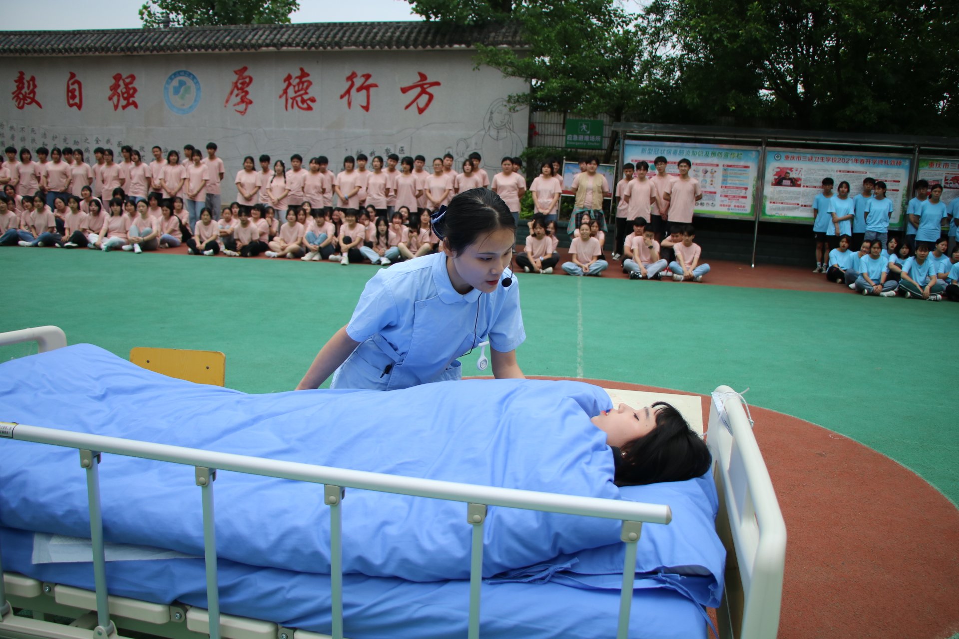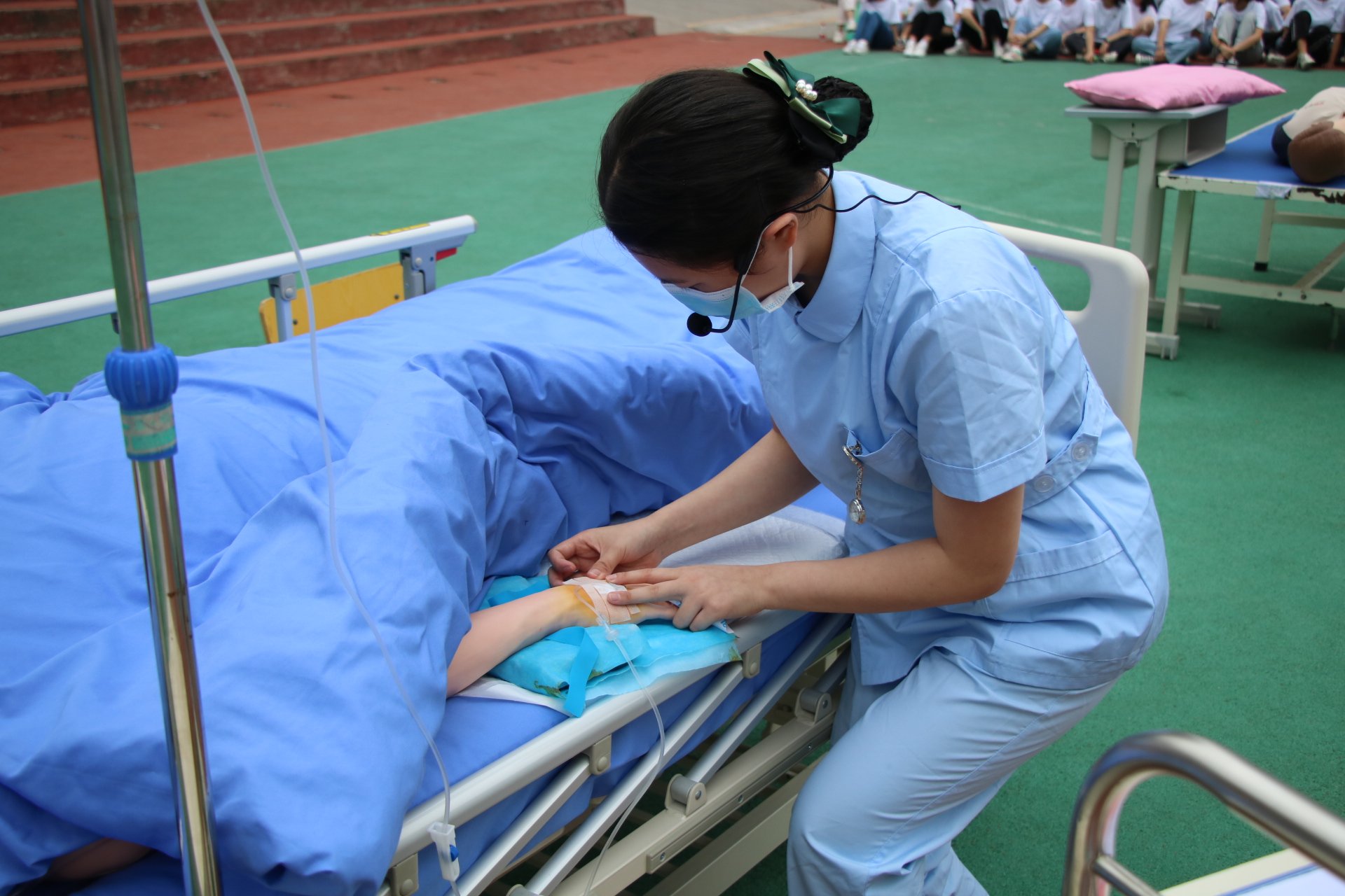 护理技能展示在同学们青春飞扬的舞步中结束。