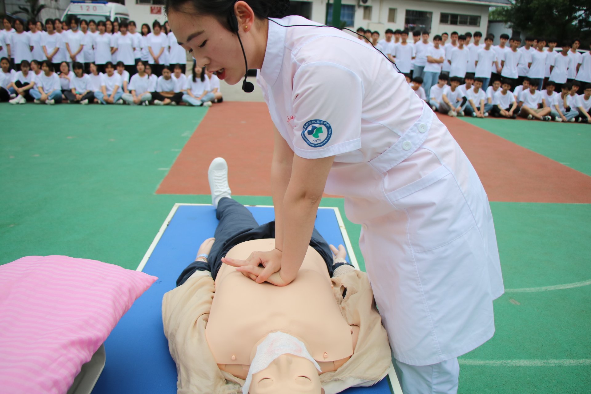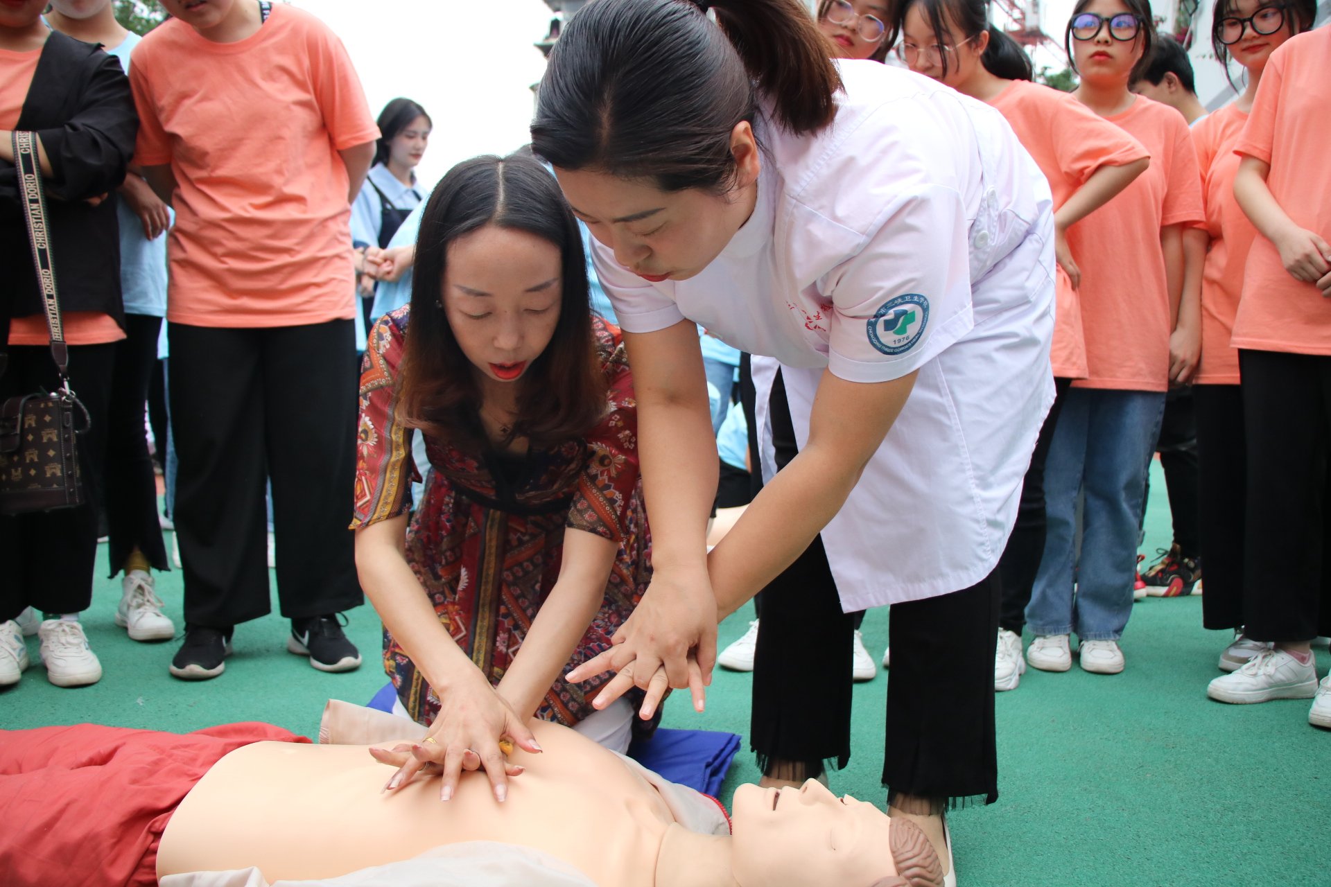 技能大赛参赛教师胡爱梅生动形象向大家地讲解了急救知识要领,并邀请学生和家长亲身体验急救的全过程,掌握基本的急救 技巧。