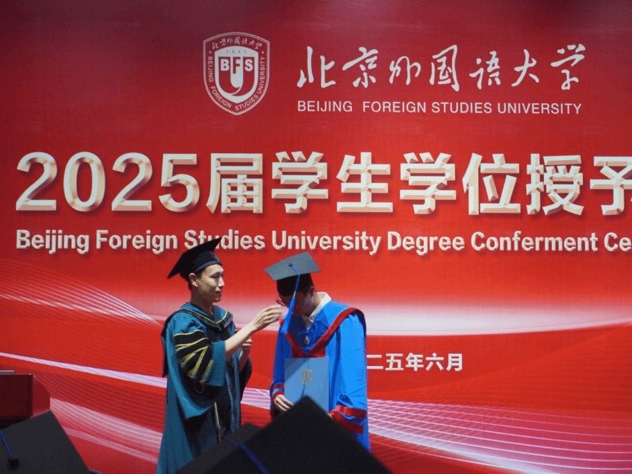仪式最后,2025届毕业生们齐唱校歌,重温北外人的初心与使命。同学们一起抛起硕士帽,象征着希望的放飞。至此,pg娱乐电子游戏官网入口2025届毕业生学位授予仪式圆满结束。