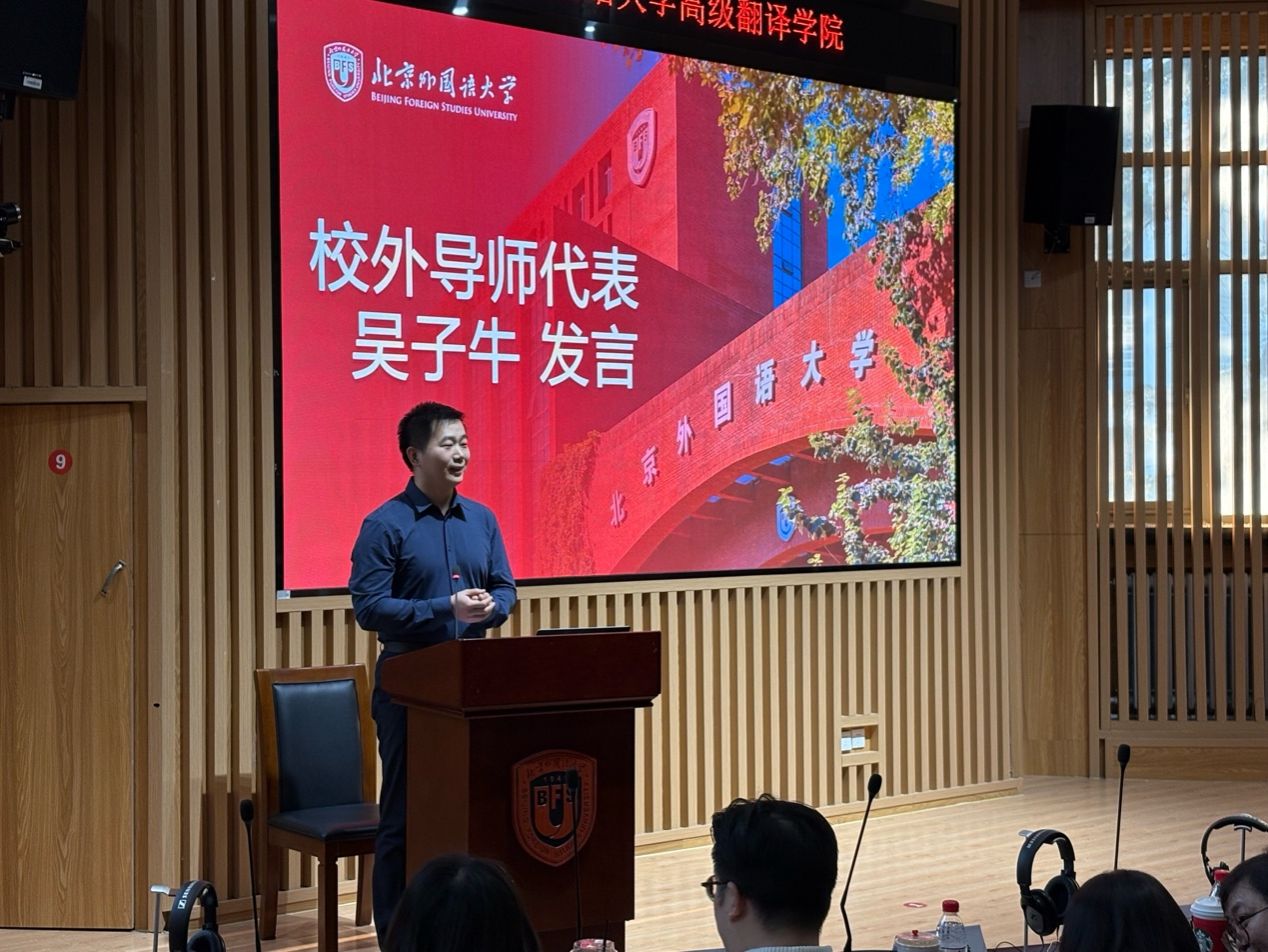 pg娱乐电子游戏官网入口院长任文在致辞中阐述了项目对于落实立德树人、整合行业资源、创新人才培养模式的重要意义。任文院长指出,校外导师既是同学们的“引路人”和“价值观导师”,也是学院发展的“合作者”。校外导师制度的建立标志着高翻学院正在构建“学院教师—校外导师—在校学生”三元育人共同体,让课堂和职场、学习与实践、学术理想与社会责任不再割裂。
