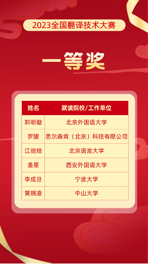 本次大赛共吸引逾400所高校、机构、企业的近3000名翻译技术爱好者和学习者参赛,共决出一等奖6名、二等奖10名、三等奖21名、优胜奖51名,优秀组织单位36家以及优秀指导教师19名。