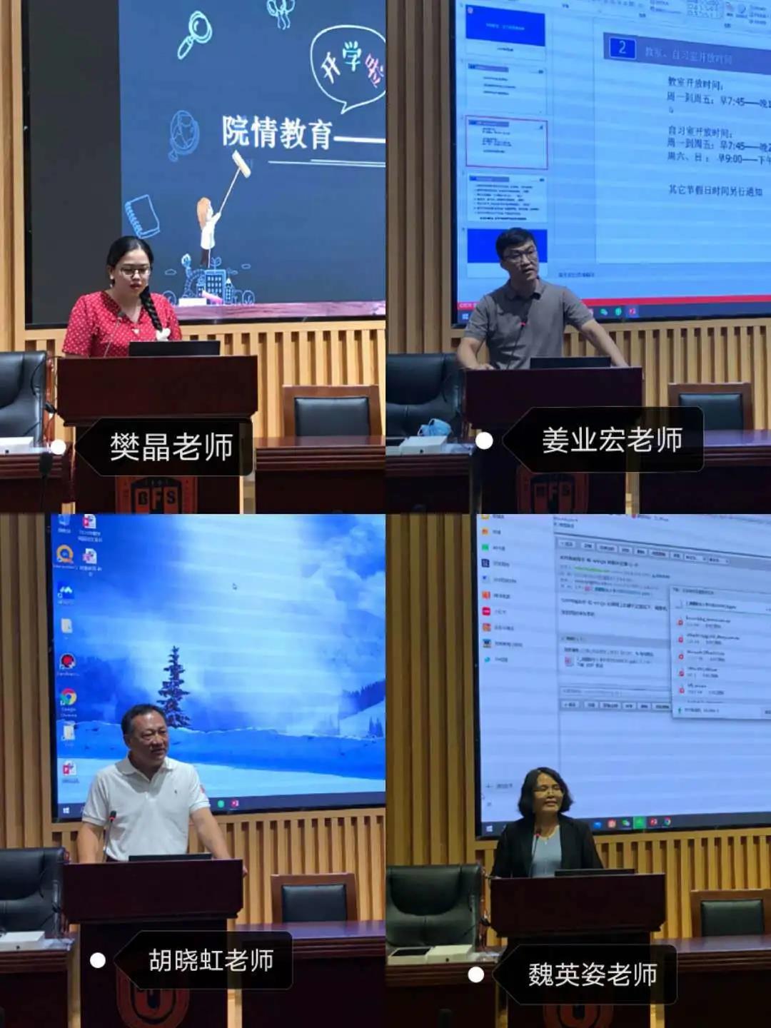 随后,樊晶老师就教务管理所涉及的课程学分、导师选择、学位申请和各类比赛的情况等事项向同学们详细讲述了;姜业宏老师则向大家介绍了学院教室、自习室规章制度的相关情况;胡晓虹老师讲了办公室财务事务;魏英姿老师就辅导员工作、学生党团建设及学生事务等做了全面细致地介绍和阐述。