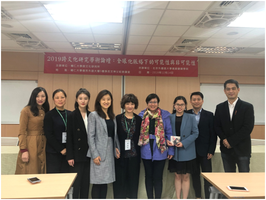 2019年12月14日,高翻学院师生一行6人,来到中国台湾辅仁大学,参加由辅大跨文化研究所主办、北外pg娱乐电子游戏官网入口合办的“2019两岸跨文化研究学术论坛——全球化脉络下的可能性与非可能性”。本次参会团由孙婷婷老师任团长,组员包括曲强、周明、樊晶老师,以及刘超、李艳两位博士生。