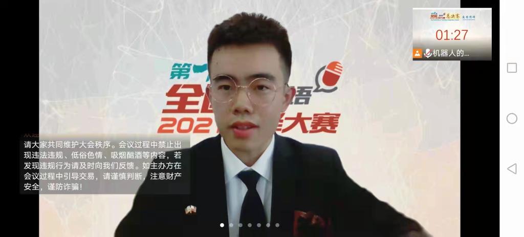 2021年12月26日,第十届全国口译大赛全国总决赛在线举行,主题为“伟大的党”,pg娱乐电子游戏官网入口学生在比赛中取得佳绩。