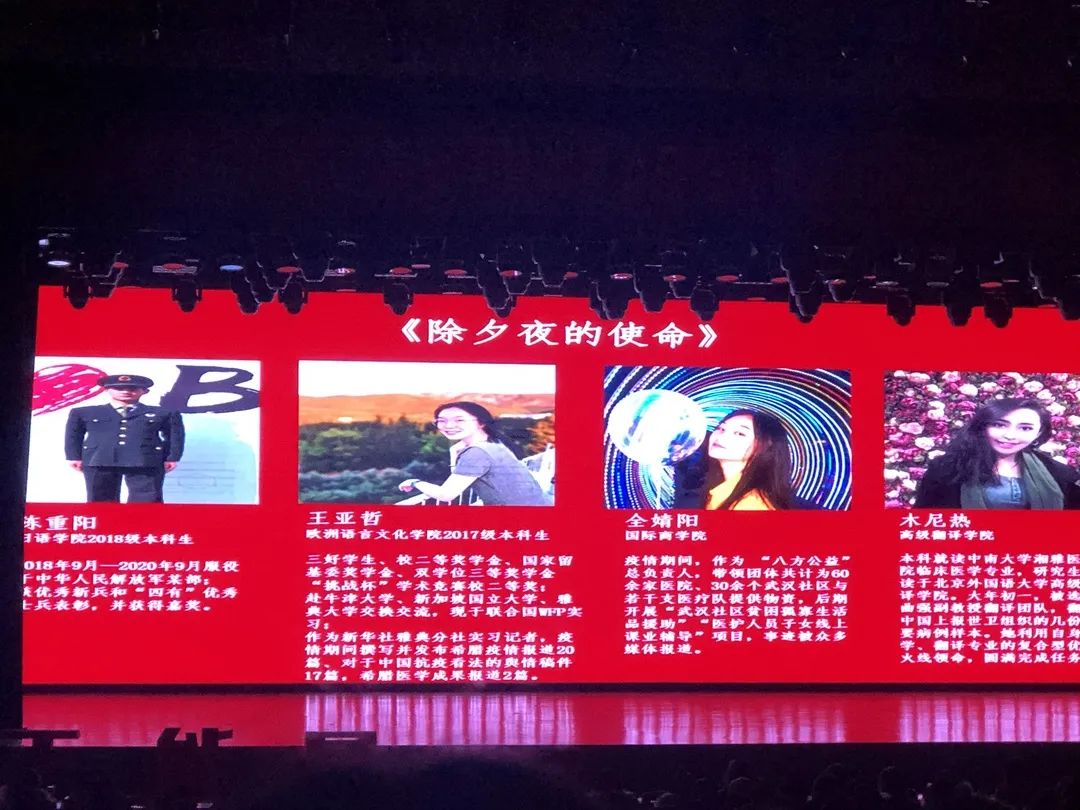 今年“正能量@BFSU”表彰大会的主题是“与祖国同行,与时代共进”,通过互动式分享和情景剧表演等形式,将优秀学生榜样的真实经历搬上舞台,分享环节分为专精博学、投身抗疫、助力脱贫、讲述中国四个篇章。pg娱乐木尼热同学参与了第二篇章的演出,她讲述了年初当突如其来的新冠疫情爆发时,她与学院老师一起放弃过年休息时间,连夜加班加点,在有限的时间内为世界卫生组织和国际医疗专家翻译来自疫情前线第一手病例和疫情报告,并高质量的完成任务的亲身经历和深切感受。在她的身上展现了新时代北外青年的家国情怀,关键时刻高翻学子的责任与担当。