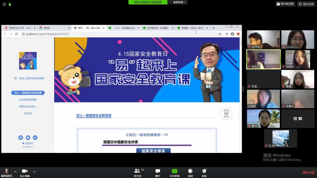 疫情当前,全民国家安全意识的重要性尤为突出。4月13日至17日,北外pg娱乐电子游戏官网入口组织开展了“4·15全民国家安全教育日”宣传教育活动,高翻学院研一、研二全体同学以班级为单位在线参与活动,并进行汇报与讨论。