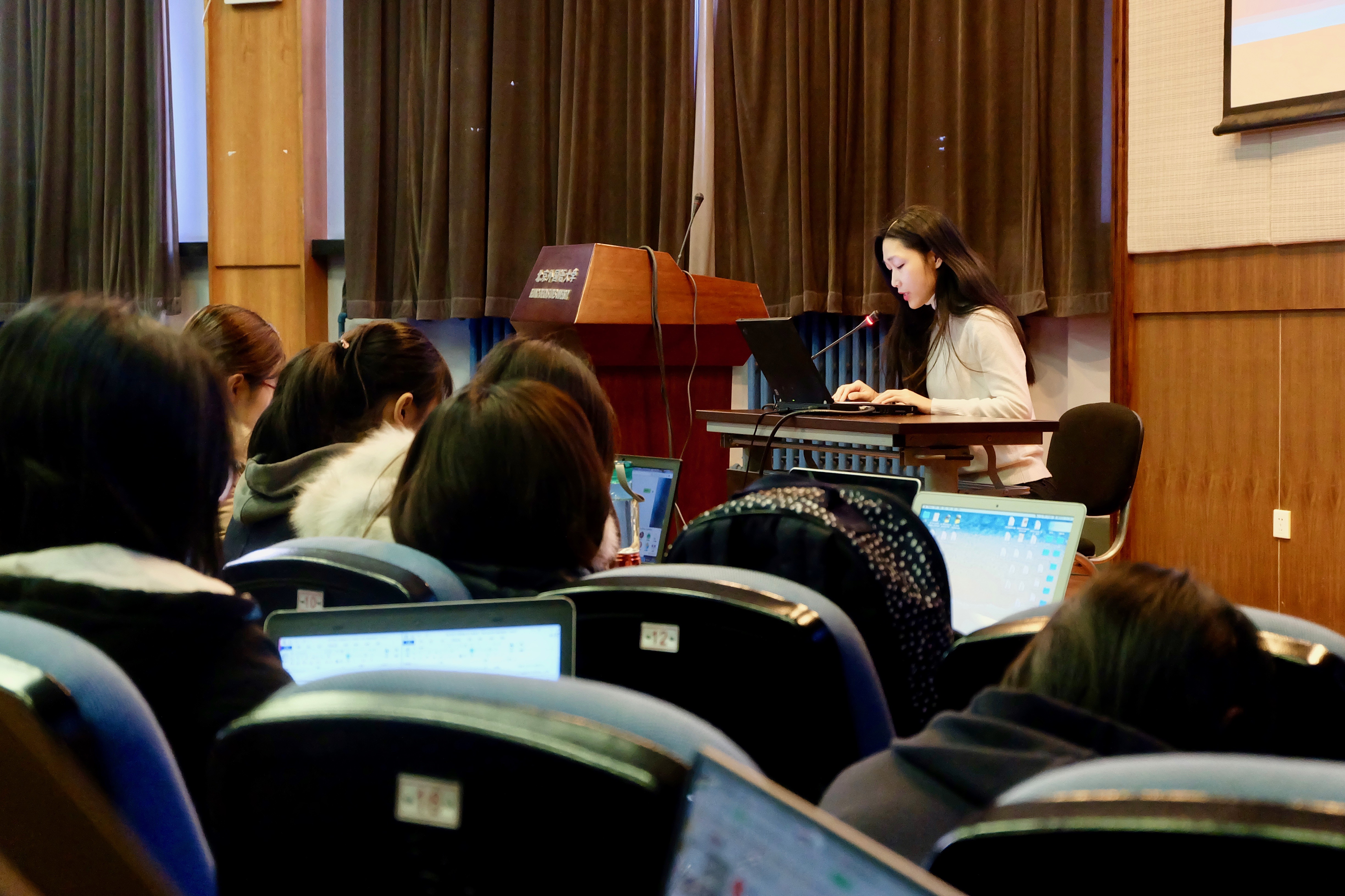 来自职业生涯工作坊的李雪菲同学在报告中总结了小组一年来的主要活动及成果,通过沙盘心理活动、模拟面试项目、就业信息发布等工作,职业生涯工作坊的组员们有效帮助同学准确进行职业定位,做好充分就业准备。周澄瑜同学作为组长,介绍了心理协会进行的一系列工作,包括集体职业生涯咨询、心理辅导、团体建设等,初步达到帮助同学减轻心理压力,自信面对生活的目标,也希望在未来不断扩大师生的参与度。社会实践小组的组长李雪怡同学介绍了该团队负责的第二课堂成绩整理、校友录整理、东花市社区非遗项目的立项和天使义卖活动,多样化的社会实践项目极大丰富了高翻学院师生的课余生活。张梅娟同学在汇报中总结了海棠社过去一年的工作成果,海棠社旗下翻译团队、文创产品设计团队和考研一对一辅导小组,目前已经实现盈利。口译大赛调研及品牌推广组的组长田雪芳同学为我们介绍了2017年北外高翻口笔译大赛的筹划及举办情况,为下一届大赛筹备提供了宝贵经验。