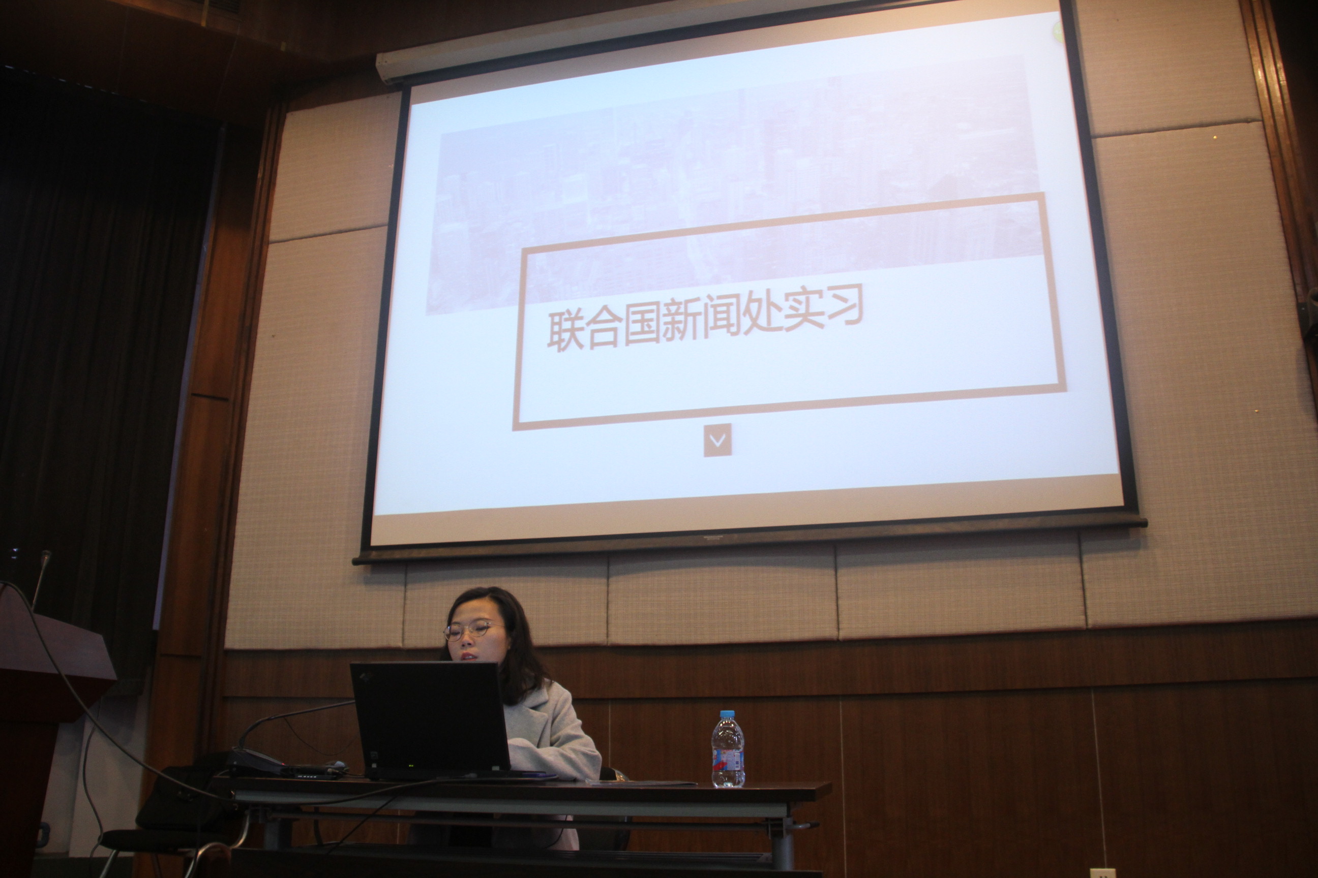2017年11月9日,在电教楼300人礼堂,陈宇飞、刚小宝、卢小平、孔天元、罗雪萍、周护杏、李坤夏、秦宇池八位同学,分别从英国足球项目、歆语工程、对外事务办公室、“一带一路”志愿服务、联合国、金融及面试综合等方面,为研一同学带来了一场别开生面的分享大会。一同参加此次分享会的还有高翻学院党支部书记胡晓莉老师和辅导员吴玫老师。此次分享会由实践部谢佳梅同学主持。