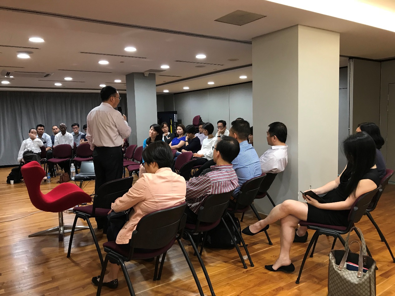 27日上午,李长栓教授还与新加坡教育部官员、已经开设和打算开设翻译课的高中教师分享北外高翻学院的教学方法。