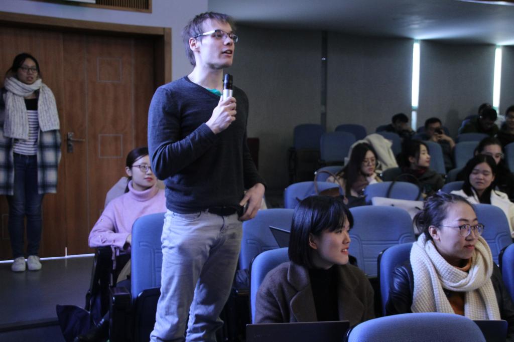 为了让同学们更好地回答这个问题,François MASSION为大家讲解了人工智能当前具备的能力。他指出,自然语言架起人类与机器之间的桥梁。通过自然语言,机器可以先知道某个词出现的频率和可能表达的意思,通过语法规则进行解析,最后再通过背景知识进行语义翻译。François MASSION还系统地为同学们分析了机器学习的不同类型,介绍了数据和知识挖掘等概念。