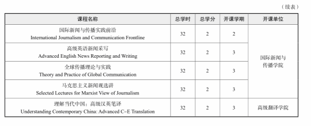 3. 重视实践环节。强调翻译实践能力的培养和翻译案例的分析,翻译实践贯穿教学全过程,要求学生在学期间至少有 15 万字以上的笔译实践或不少于 400 磁带时的口译实践。