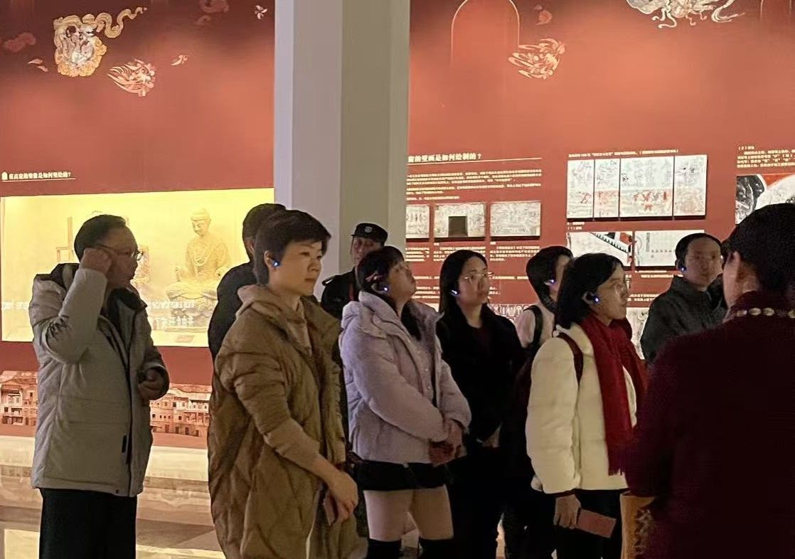 “莫高精神”红色主题展通过历史文献、老照片、视频影像,真实呈现敦煌文物事业的艰辛历程,致敬一代代莫高人“坚守大漠、为国护宝”的赤子之心,展现敦煌研究院从荒漠孤守到领跑世界文化遗产保护的使命传承。党员们在参观过程中认真学习莫高窟历史沿革和文物保护研究成果,感悟“莫高精神”的内涵:“坚守大漠、甘于奉献、勇于担当、开拓进取”。