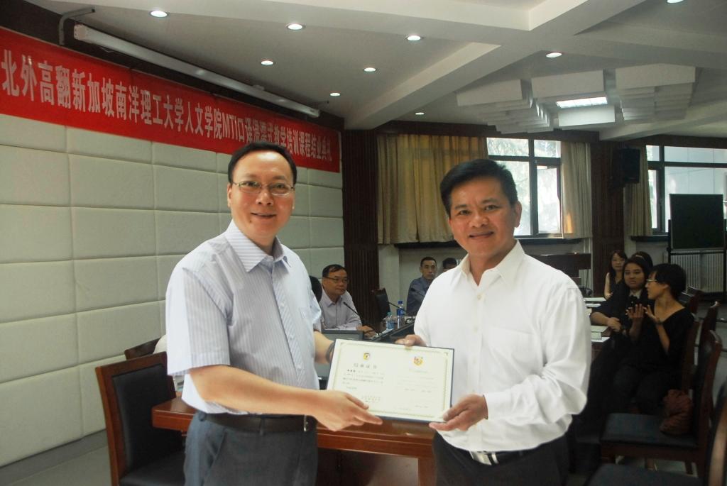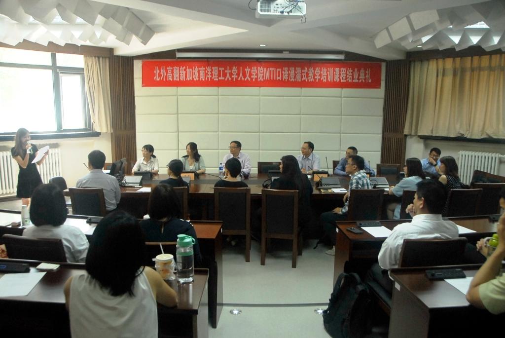 经过六周紧张而艰苦的学习与训练,在pg娱乐电子游戏官网入口教师和助教同学的指导下,新加坡南洋理工大学(NTU)人文与社科学院翻译与口译硕士学位课程(MTI)浸濡项目于2016年7月1日顺利结业。